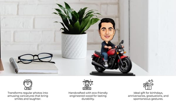 Personalized Gift for Friends, Brother, BFF, Boyfriend, Father Character Caricature Photo Frame Unique Design Customized Gift for Friends & Family, Motorcycle Rider - 1 (STAND 7 INCHES)